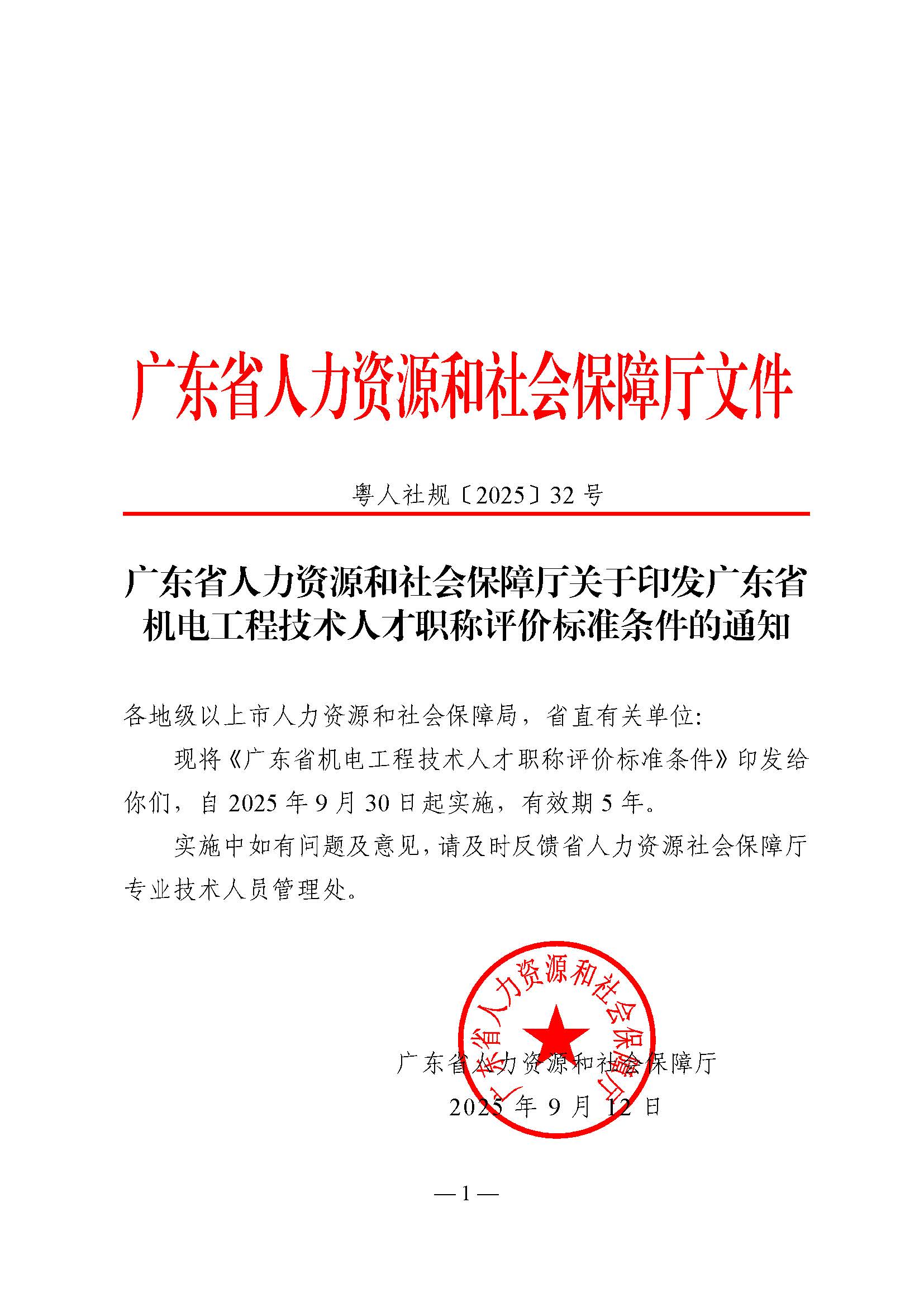 粤人社规〔2025〕32号 关于印发广东省机电工程技术人才职称评价标准条件的通知.pdf